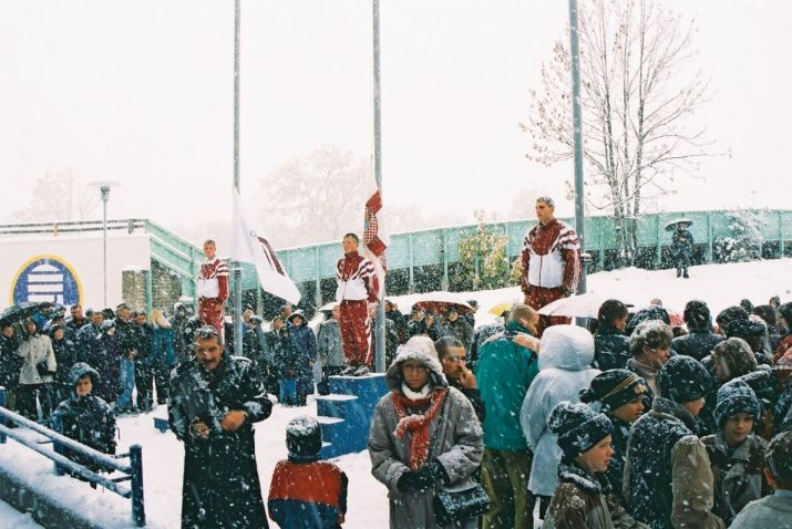 Basketbola halles atklāšanu 1997. gada 25. oktobrī pavadīja šim gadalaikam netipiska snigšana.