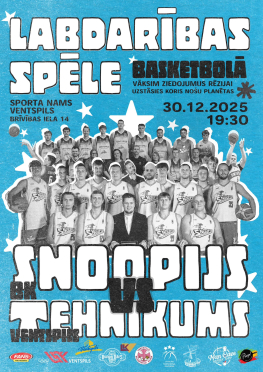 30.decembrī plkst. 19.30 Sporta namā "Centrs" jau trešo gadu norisināsies aizraujoša draudzības basketbola spēle – ''BK “Snoopijs” pret draugiem'', un šogad draugu sastāvu veidos jaunā Ventspils tehnikuma komanda. Šis būs ne tikai sportisks, bet arī sirsnīgs notikums, kas pulcēs basketbola cienītājus un ģimenes, lai kopīgi atbalstītu cēlu mērķi.